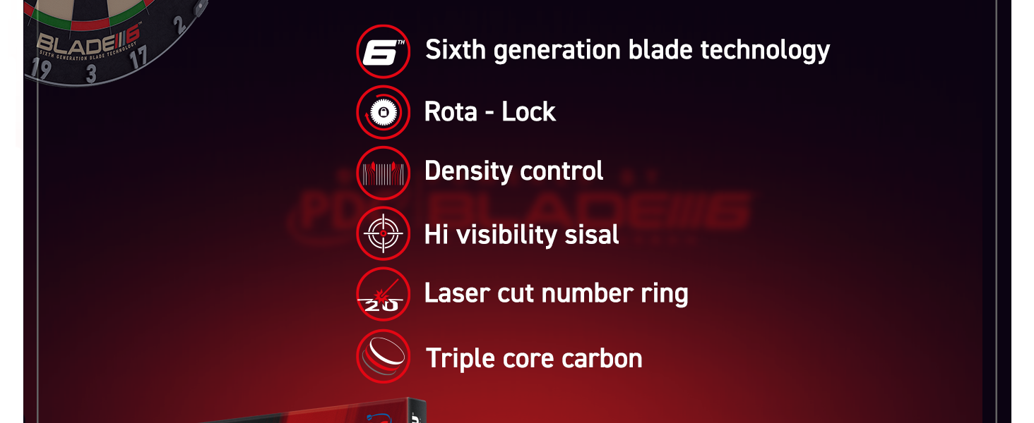 The Blade 6 Triple Core dartboard celebrates the latest PDC Exclusive Endorsement, where the world’s best professionals will now play the most technically advanced dartboard available, creating thousands of new stories.