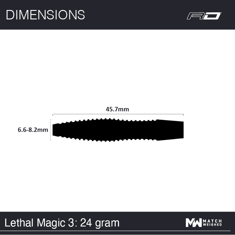 Barrel Dimensions24g - 6.6mm-8.2mm x 45.7mm28g - 6.7mm-8.6mm x 50.8mm