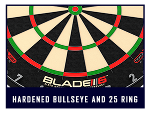 The Blade 6 Triple Core dartboard is the most technically advanced dartboard available and is the culmination of 30 years engineering innovation. The revolutionary Triple Core sisal base (Patent Number 2507762) complements Sixth Generation Blade technology, offering the ultimate combination for optimal fibre density and maximum scoring.